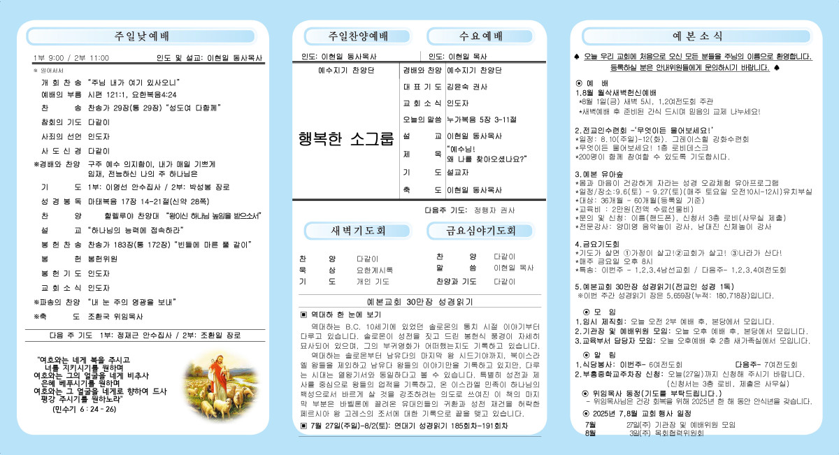 7월 27일 주보 페이지 정보 작성자 관리자 댓글 0건 조회 321회 작성일 25-07-26 21:54 본문 7월 27일 주보 목록 이전글8월 3일 주보 25.08.09 다음글7월 20일 주보 25.07.19 댓글목록 댓글목록 등록된 댓글이 없습니다.