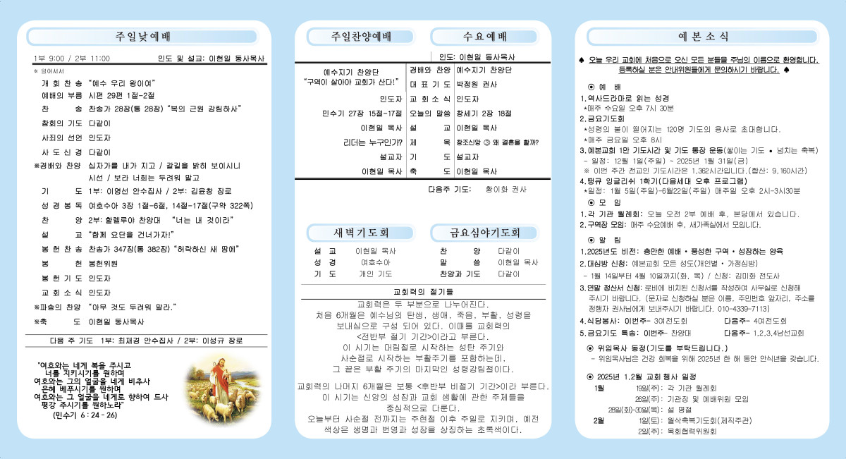 1월 19일 주보 페이지 정보 작성자 관리자 댓글 0건 조회 427회 작성일 25-01-19 00:22 본문 1월 19일 주보 목록 이전글1월 26일 주보 25.01.25 다음글1월 12일 주보 25.01.12 댓글목록 댓글목록 등록된 댓글이 없습니다.