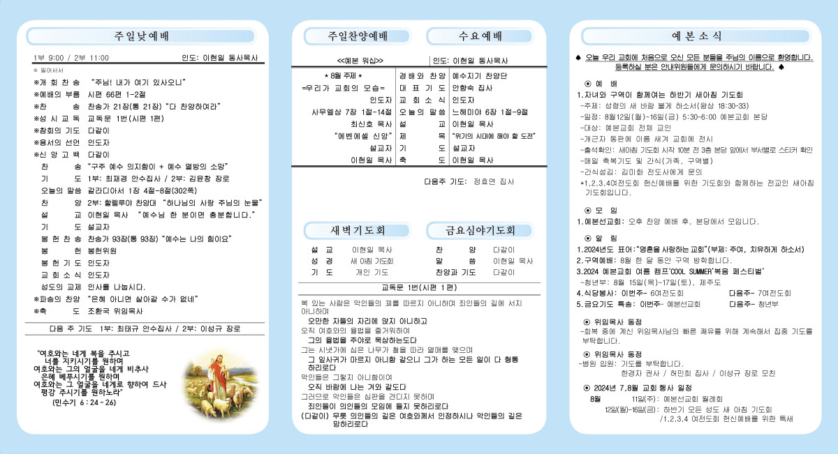 2024년 8월 11일 주보 페이지 정보 작성자 관리자 댓글 0건 조회 570회 작성일 24-08-10 20:10 본문 2024년 8월 11일 주보 목록 이전글2024년 8월 18일 주보 24.08.17 다음글2024년 8월 4일 주보 24.08.03 댓글목록 댓글목록 등록된 댓글이 없습니다.