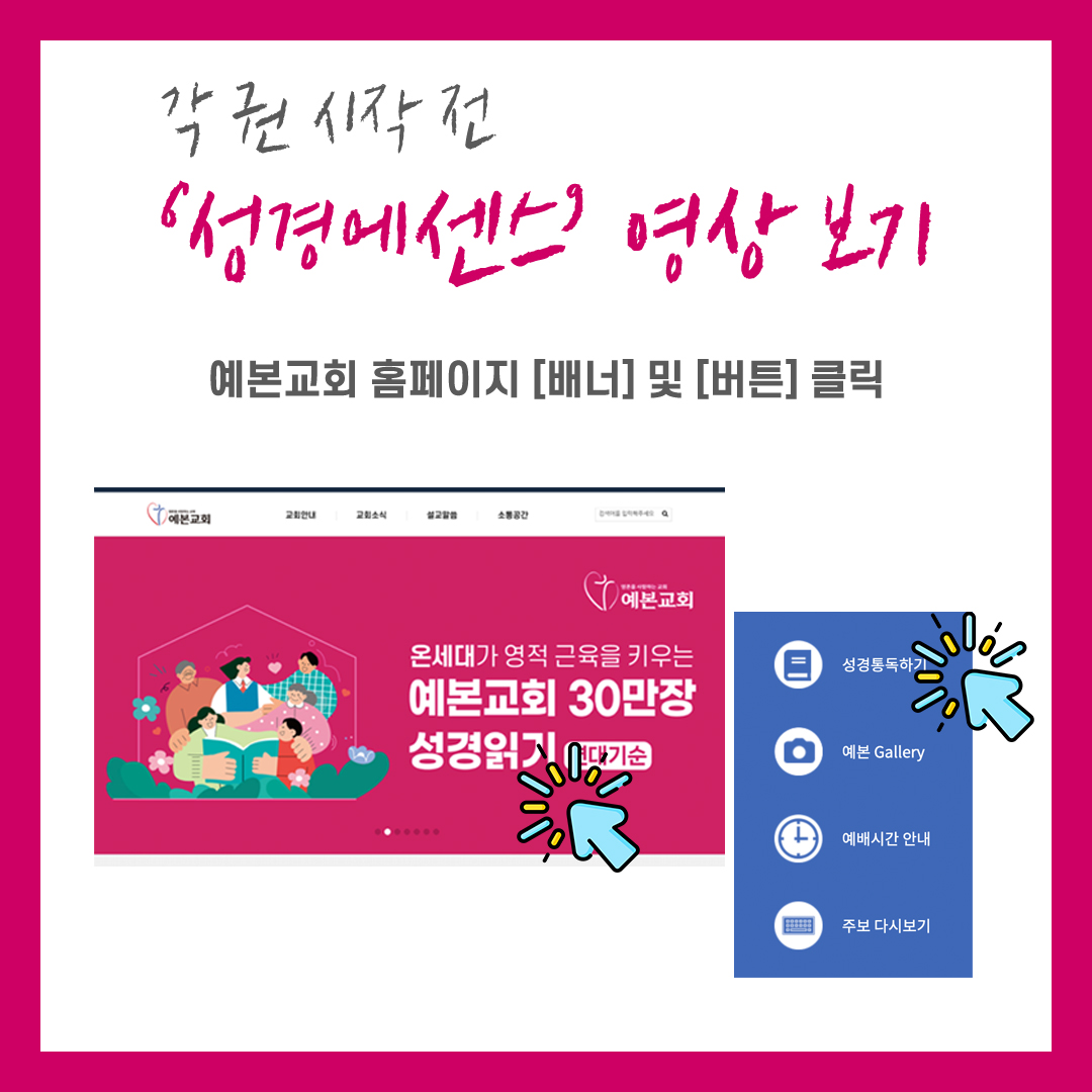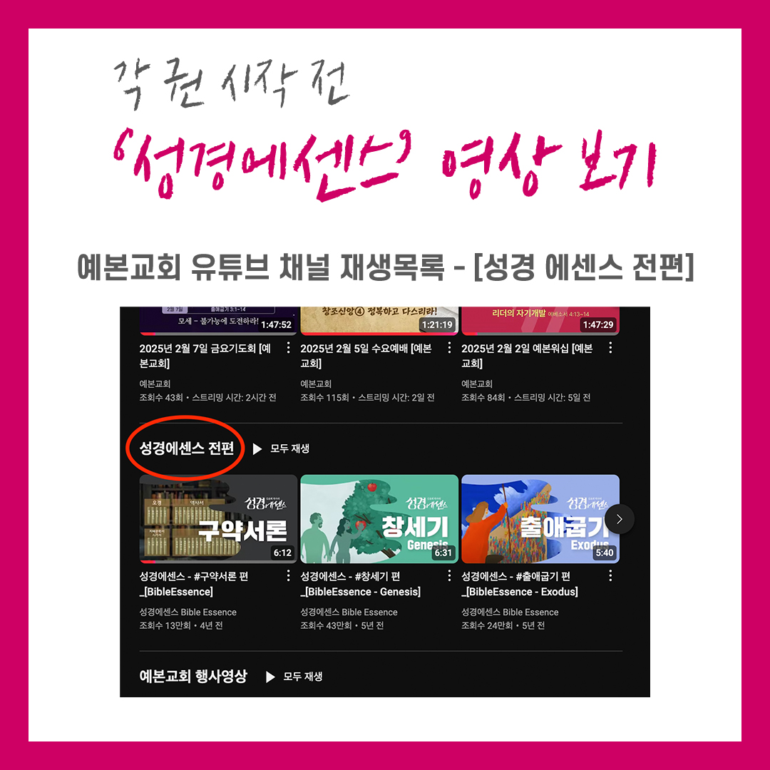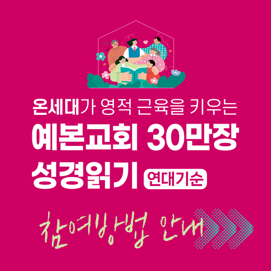 2025 예본교회 30만장 성경읽기 안내 페이지 정보 작성자 관리자 댓글 0건 조회 1,205회 작성일 25-02-09 12:59 본문 2025 예본교회 30만장 성경읽기 안내 목록 이전글Miracle Maker! / 2025년 봄 새학기를 위한 전교인 저녁 기도회 25.02.16 다음글2월 월삭 새벽 헌신예배 - 장로・안수집사회 주관 25.01.30